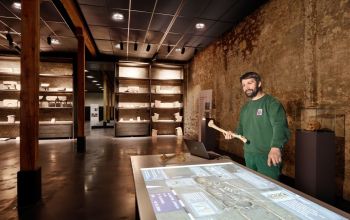 „Knochen erzählen die Geschichten, die nicht aufgeschrieben wurden“, sagt Claus Kropp. Der Leiter des Freilichtlabors Lauresham steht in der Zehntscheune, die vor rund 460 Jahren aus Steinen älterer Gebäude errichtet wurde und Lorsch als Lager des Zehnt diente – so hießen die Abgaben der Bauern an ihre Herren. Heute ist das imposante Gebäude als Schaudepot Teil des UNESCO Welterbes Kloster Lorsch. Im schwarz gehaltenen Innern entfalten einzeln angestrahlte Steinfragmente ihre Schönheit. Besonderer Blickfang ist die Ausstellung „Geschichte schöpfen – Quellen aus einem Brunnen“, die spektakuläre Funde aus einem alten Brunnen zeigt. Alles, was hier zu sehen ist, wurde auf dem Klostergelände ausgegraben. Weitere Funde verwahren die Staatlichen Schlösser und Gärten Hessen, zu denen das Kulturdenkmal an der hessischen Bergstraße, in einem wissenschaftlichen Depot unter dem Dach der Scheune.